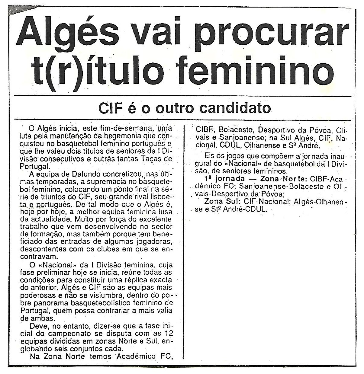 característico dos treinadores do Algés. O boletim Bola ao Cesto, dedicado, em